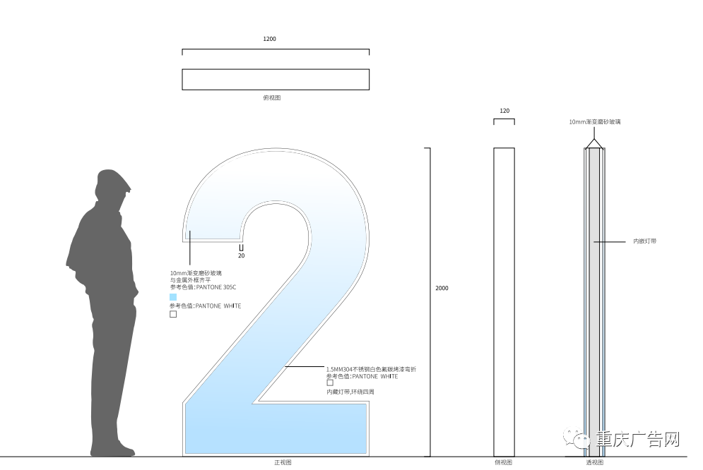 立体字采用不锈钢折弯成型,外贴渐变磨砂玻璃,内藏灯带。